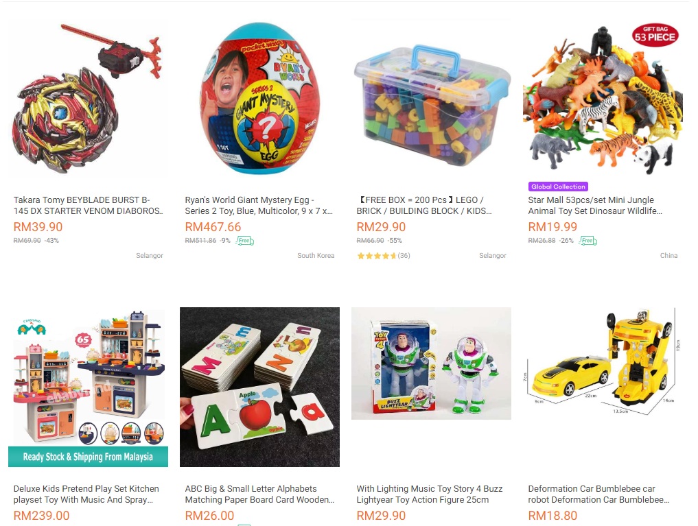 Dekat sana ada pelbagai jenis permainan untuk kanak – kanak lelaki dan kanak – kanak perempuan. Anda boleh pilih mengikut jenama dan produk permaianan yang anda inginkan.