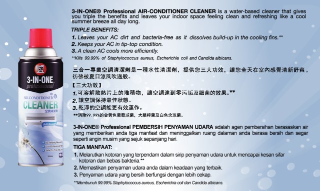 Rujuk sini untuk info harga dan spesifikasinya – WD40 Aircond cleaner