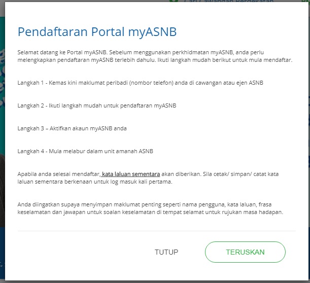 Hanya pengguna yang berdaftar di MyASNB sahaja boleh menggunakan kemudahan ini.