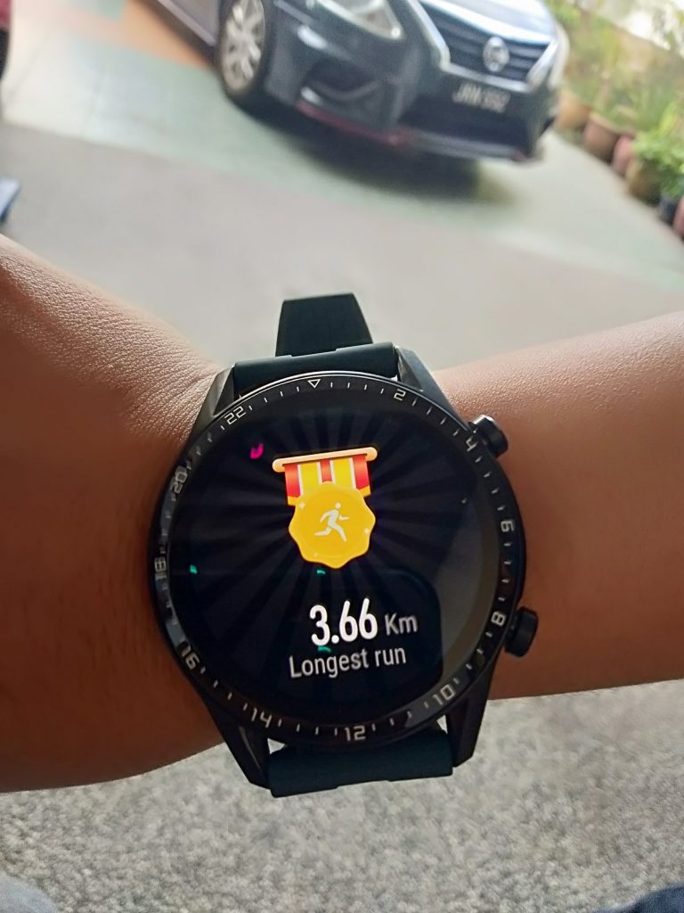 Huawei watch GT2 bersama dengan tapak pengecas. Fungsi whatapp yang memudahkan kita. sambil berlari dekat taman boleh lihat pesanan whatapp, mesenger , sms dan lain – lain.