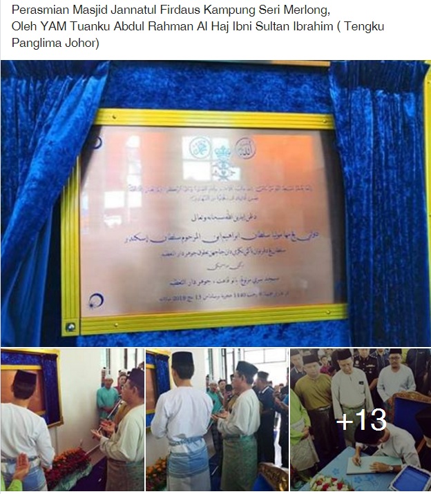 1 – Jumaat 15/3/2019Perasmian Masjid Jannatul Firdaus Kampung Seri Merlong,Oleh YAM Tuanku Abdul Rahman Al Haj Ibni Sultan Ibrahim ( Tengku Panglima Johor)