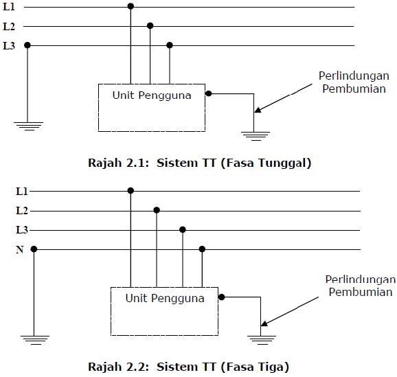 iv. Jenis sistem pembumian ( Sistem TT ) seperti rajah 2.1 dan rajah 2.2.