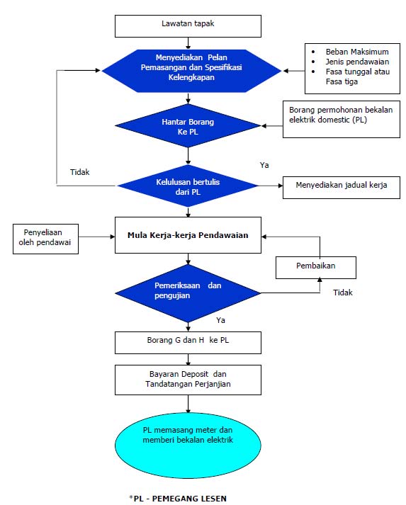 Peraturan 11(1), Peraturan-Peraturan Elektrik 1994 – mensyaratkan semua pendawaian, tambahan pendawaian atau pendawaian semula yang hendak dijalankan oleh Kontraktor Elektrik atau Unit Pendawaian Elektrik perlu mendapat kelulusan bertulis dari pemegang lesen atau pihak berkuasa bekalan.