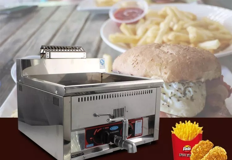 Maklumat lanjut mesin goreng ayam – stainless steel counter LPG gas deep fryer